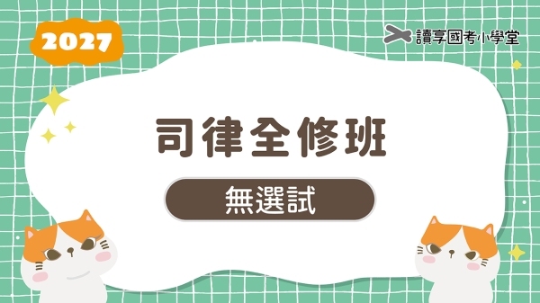 ★本商品為「無選試」課程,不提供選試科目。若欲購買包含選試四擇一的全修班課程請您重新點選首頁的「司律全修班>全套」分類就可以看到包含選試的課程。